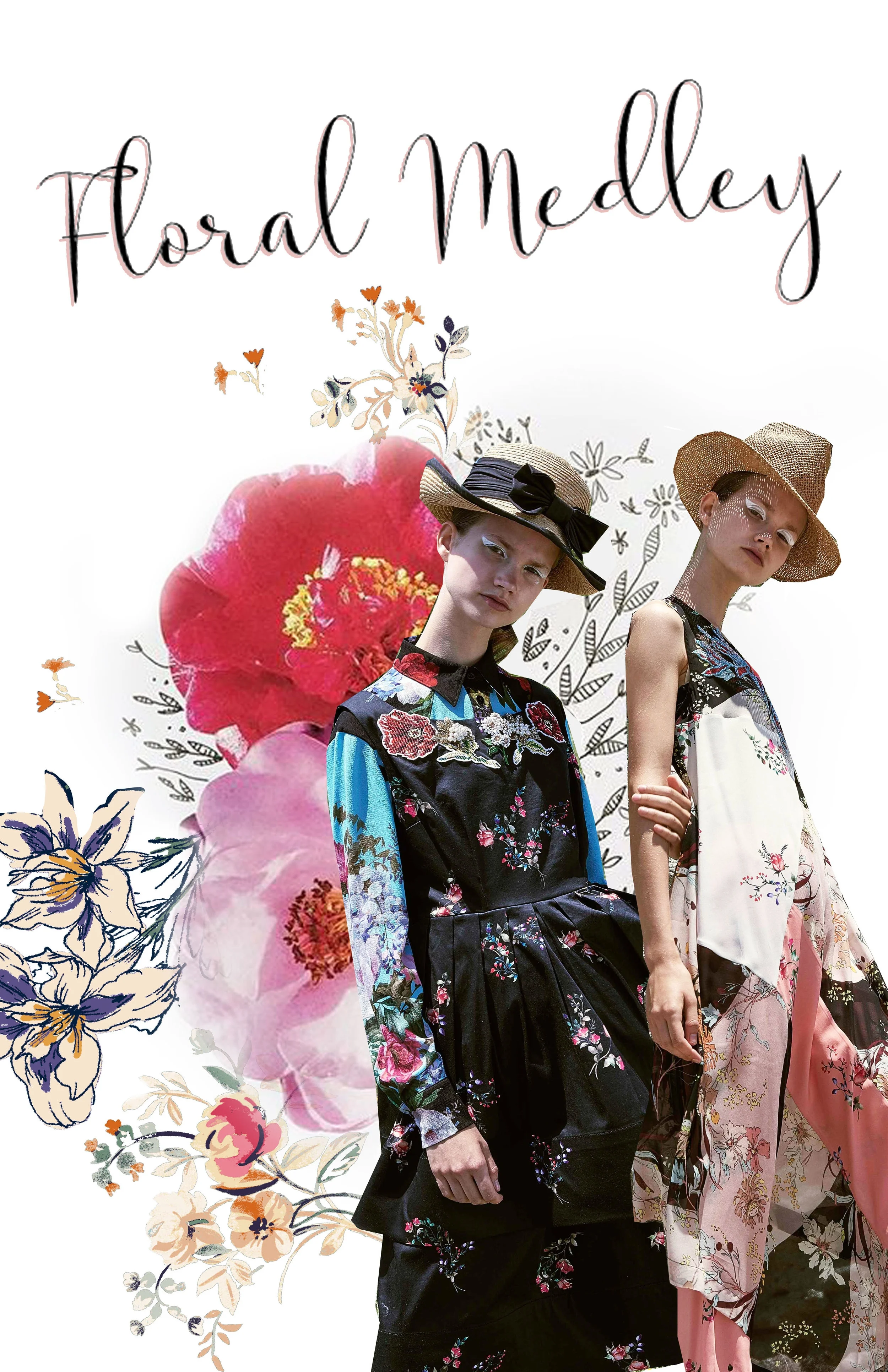 Floral Medley is a winning combination of hand painted flowers. It provides an endless assortment of perfect summer prints in key colors like blush, lavender, and deep navy.